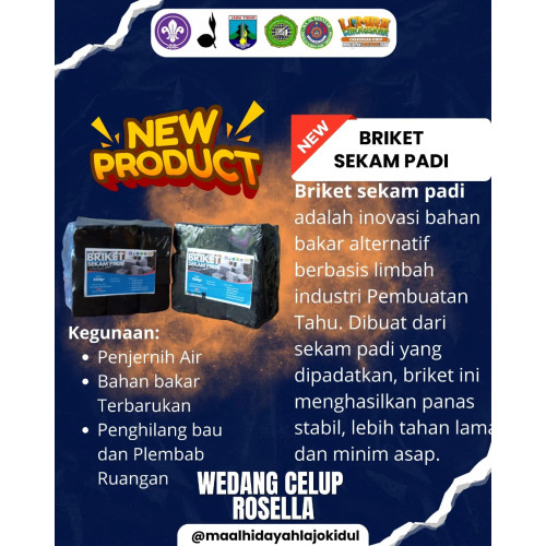 Briket Sekam Padi adalah bahan bakar alternatif ramah lingkungan yang dibuat dari limbah sekam padi berkualitas. Dengan daya bakar tinggi, asap lebih sedikit, dan tahan lama, briket ini menjadi solusi tepat untuk kebutuhan memasak, mengeringkan, maupun industri kecil.