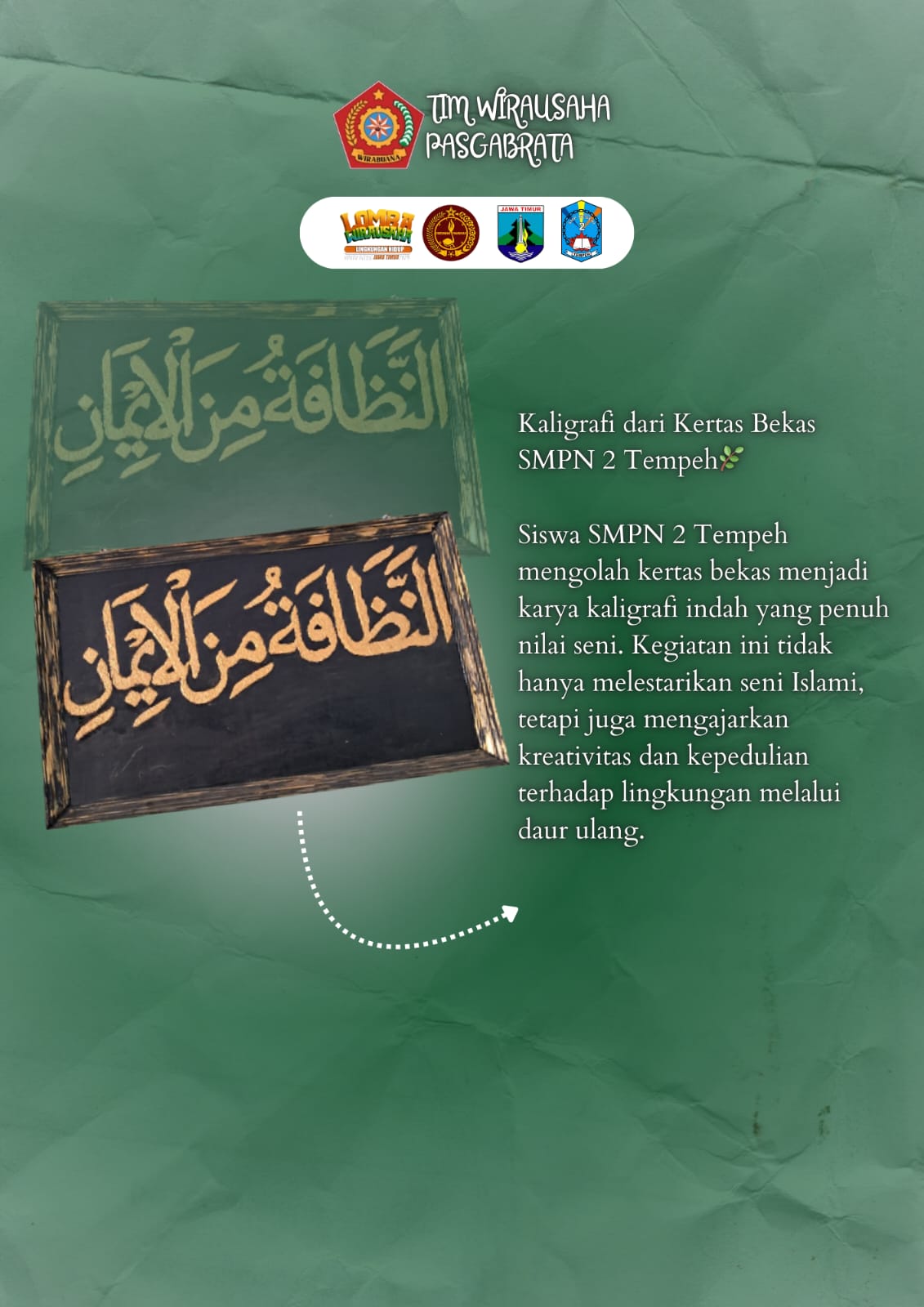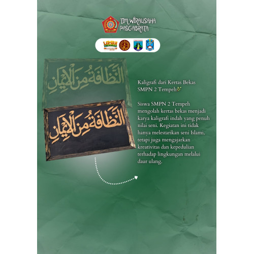 Pramuka SMPN 2 Tempeh mengolah kertas bekas menjadi karya kaligrafi indah yang penuh nilai seni. kegitan ini mengajarkan kreativitas dan kepedulian terhadap lingkungan melalui daur ulang