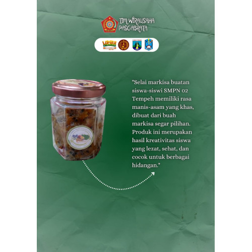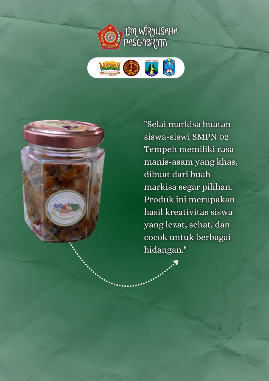 selai markisa buatan penggalang SMPN 2 Tempeh memiliki rasa asam manis yang khas, dibuat dari buah markisa segar pilihan. produk ini merupakan hasil kreativitas siswa yang lezat, sehat dan cocok untuk berbagai hidangan