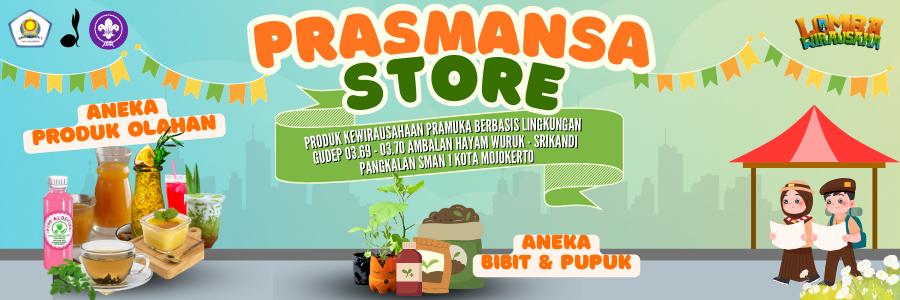 PRASMANSA STORE (Pramuka SMAN 1 Mojokerto) merupakan unit kewirausahaan berbasis lingkungan yang dikelola oleh para anggota Pramuka Penegak secara kreatif, mandiri, dan berkelanjutan.